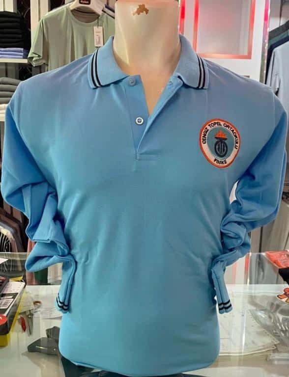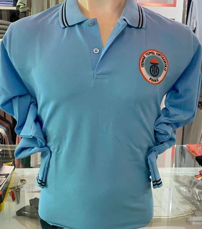 Polo yaka turkuaz uzun kollu